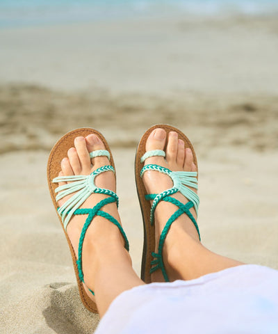 Aggiungi un tocco di stile al tuo look con questi sandali artigianali verde menta, il colore trendy di questa stagione.