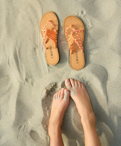 Rendi speciale ogni lunga passeggiata sulla spiaggia indossando le infradito Corallo. Realizzati con materiali flessibili e idrorepellenti, questi sandali catturano la vivacità di una barriera corallina ad ogni passo.