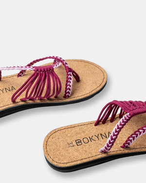 Dai libero sfogo alla tua femminilità innata con queste infradito Bokyna. Sono dotate di resistenti cinturini in nylon a forma di onda, in un'elegante combinazione di colori: rosa acceso e viola elegante. Questo paio di Bokyna farà sicuramente girare la testa a tutti quando passeggerai in riva al mare.