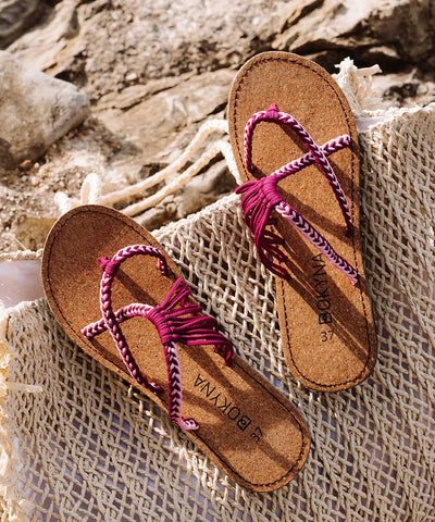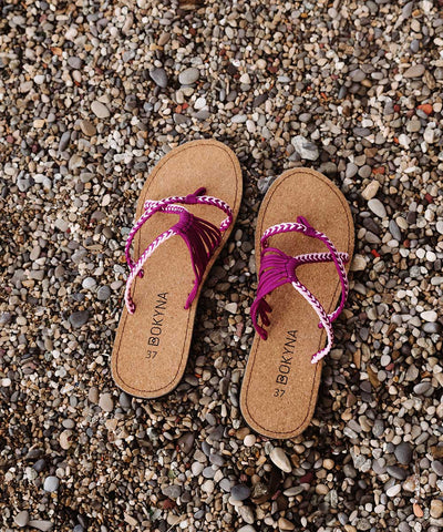 Dai libero sfogo alla tua femminilità innata con queste infradito Bokyna. Sono dotate di resistenti cinturini in nylon a forma di onda, in un'elegante combinazione di colori: rosa acceso e viola elegante. Questo paio di Bokyna farà sicuramente girare la testa a tutti quando passeggerai in riva al mare.