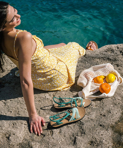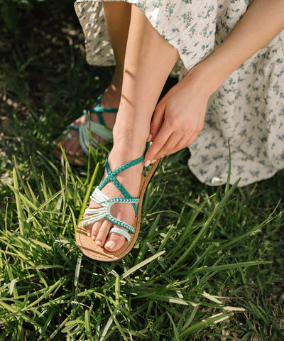 Aggiungi un tocco di stile al tuo look con questi sandali artigianali verde menta, il colore trendy di questa stagione.