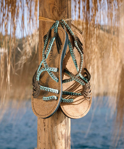 Turchese: il nostro bestseller! Sogna ad occhi aperti con onde marine e cieli luminosi. Con i tuoi sandali Bokyna sarai subito in vacanza e attirerai tutti gli sguardi sui tuoi outfit.